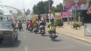 Motorbike traffic in Lomé, Togo