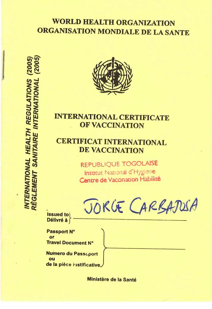 Although I had it when I was a child, I was told by my doctor’s in the U.S. that I would have to take it again. I decided to take it upon arrival at the Lomé airport. I paid 10,000 CFA for it and the whole process took about 20 minutes. I noticed the nurse did not wash his hands before putting his gloves on to administer the vaccine but he applied alcohol to my arm and the needle he used was sterile. I was given a small booklet and receipt as proof of vaccination.